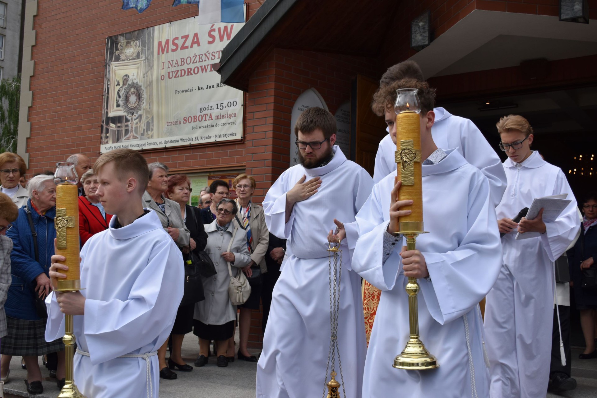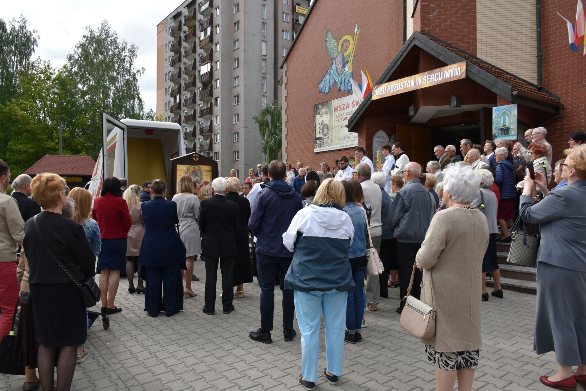 W niedzielne popołudnie (22 maja) przywitaliśmy w naszej Parafii Ikonę Świętej Rodziny, która przybyła do nas w ramach peregrynacji w Archidiecezji Krakowskiej. Wędrówka Ikony Świętej Rodziny wpisuje się w przeżywany w całym Kościele Powszechnym Rok Rodziny Amoris laetitia. Uroczystej Mszy świętej przewodniczył ks. dr Marek Wrężel – proboszcz, a okolicznościowe kazanie skierował do nas ks. dr Paweł Gałuszka - Dyrektor Wydziału Duszpasterstwa Rodzin. Wszystkim obecnym dziękujemy za udział w uroczystości i modlitwę, a rodzinom z Domowego Kościoła dziękujemy za pomoc w organizacji i przeprowadzeniu peregrynacji. Bóg zapłać! Święta Rodzino, obrazie Trójcy Przenajświętszej na ziemi - wspomagaj nas! Zdj. ks. Jarosław Chlebda